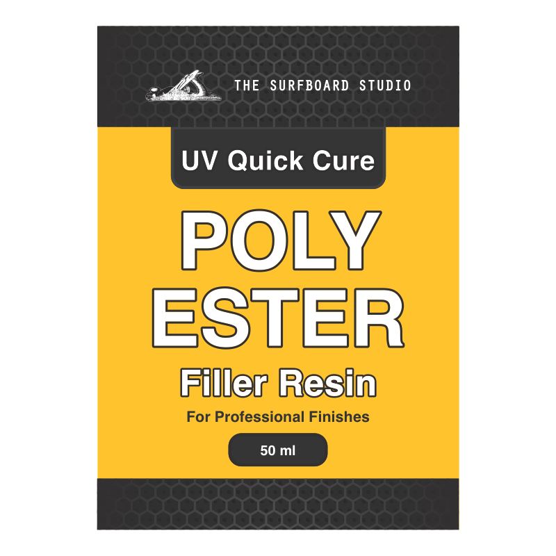 Polyester filler resin is used for repairing your surfboard with fibreglass cloth or for use as a finish coat. Can be used to seal tiny air bubbles and hairline cracks on your surfboard. Comes in re-sealable package.  See video below on how to apply the filler resin using our UV Quick Cure POLYESTER Filler Resin Repair Kit.