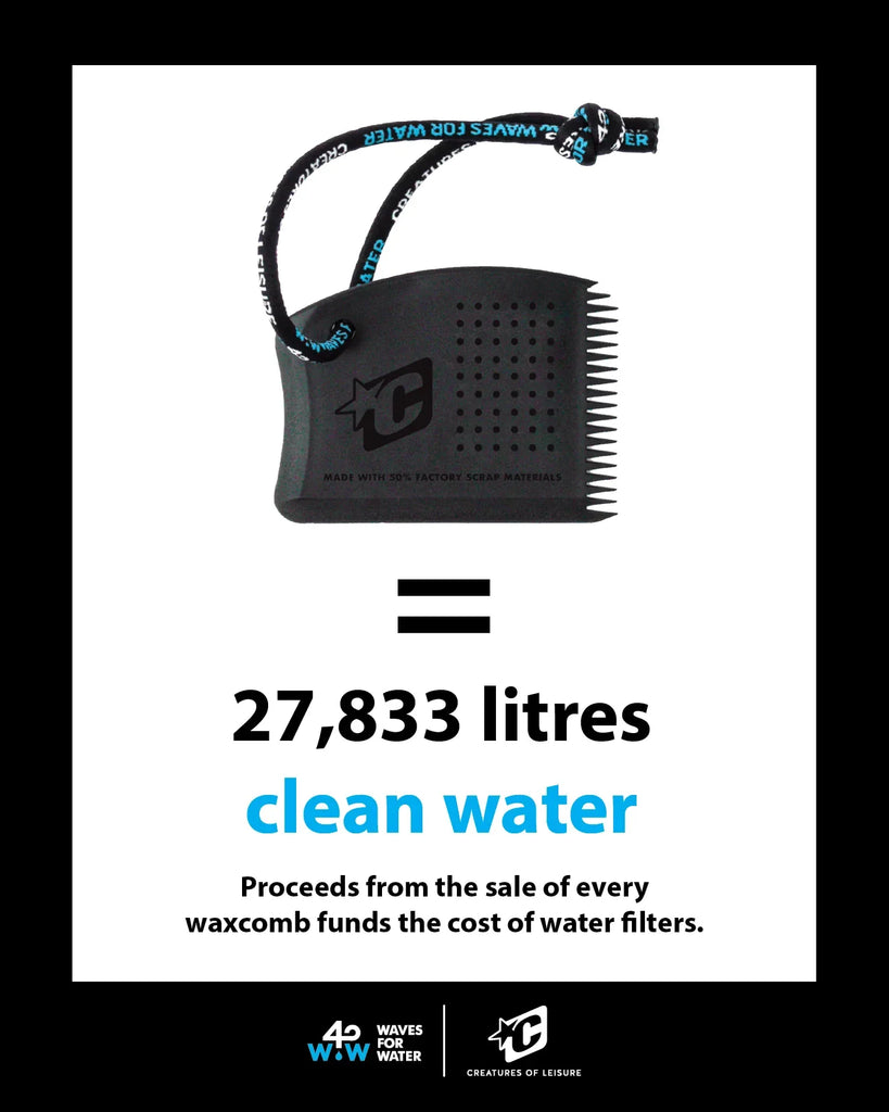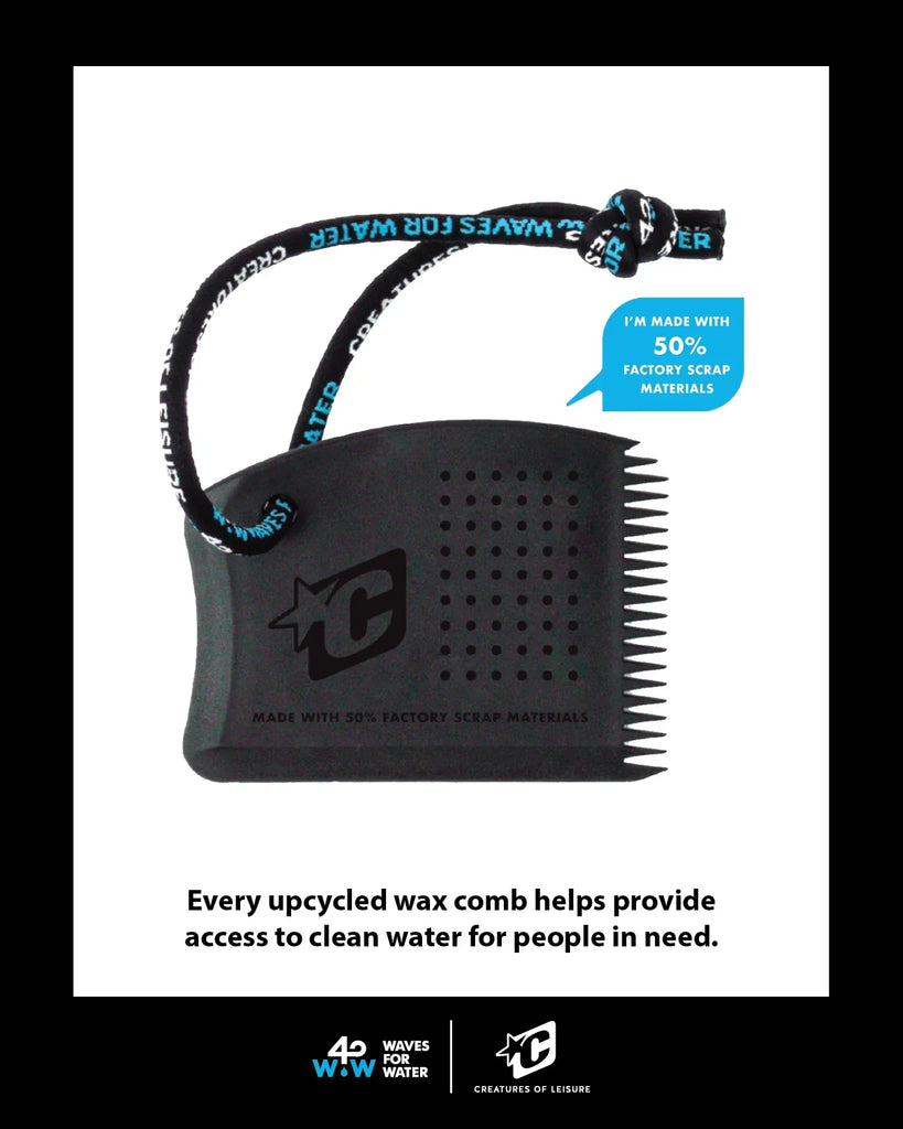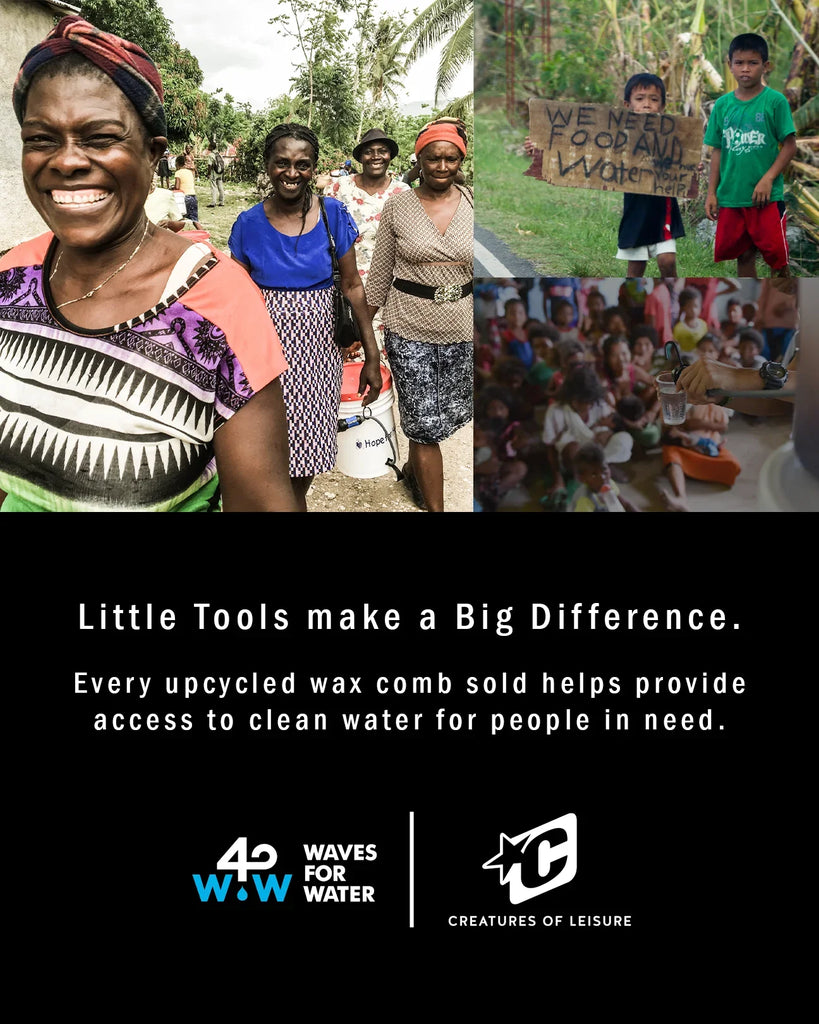 Little tools can make a BIG difference! Each up-cycled wax comb and leash string sold provides monetary proceeds to the WAVES FOR WATER foundation. Giving water to those who need it...